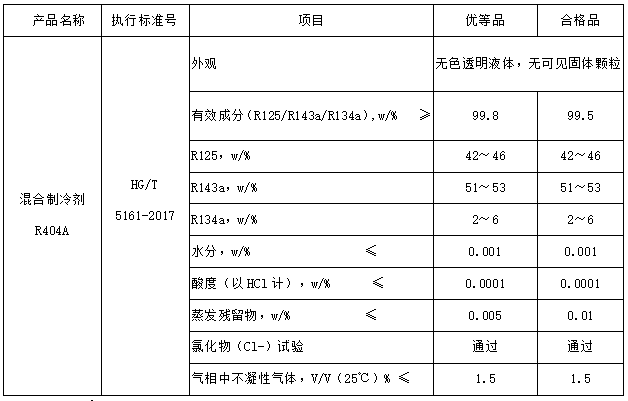 :R404A由R125、R134a和R143a混合而成,在常温下为无色气体,在自身压力为无色透明液体,主要用于低中温制冷系统。